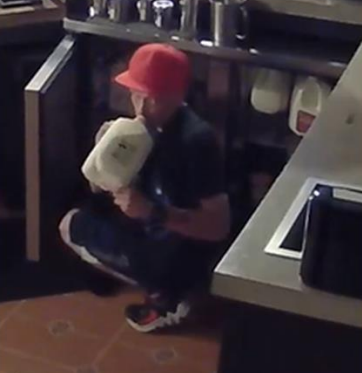 Security camera images of a suspect in one reported burglary have been released by IPD, which shows a white male in a red hat apparently walking out with a gallon of milk.